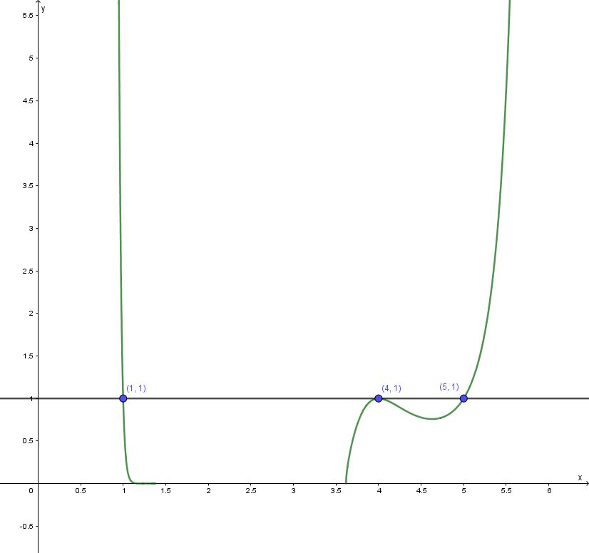 Voilà ! On a trois solutions, \(1\), \(4\), et \(5\). Lorsqu’on utilise Desmos ou Géogébra, cela semble confirmer nos résultats
