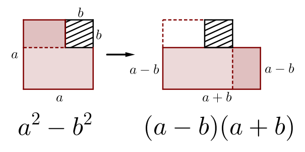 Très tôt à l’école on apprend à factoriser la différence de carrés \[a^{2}-b^{2}=(a-b)(a+b)\]