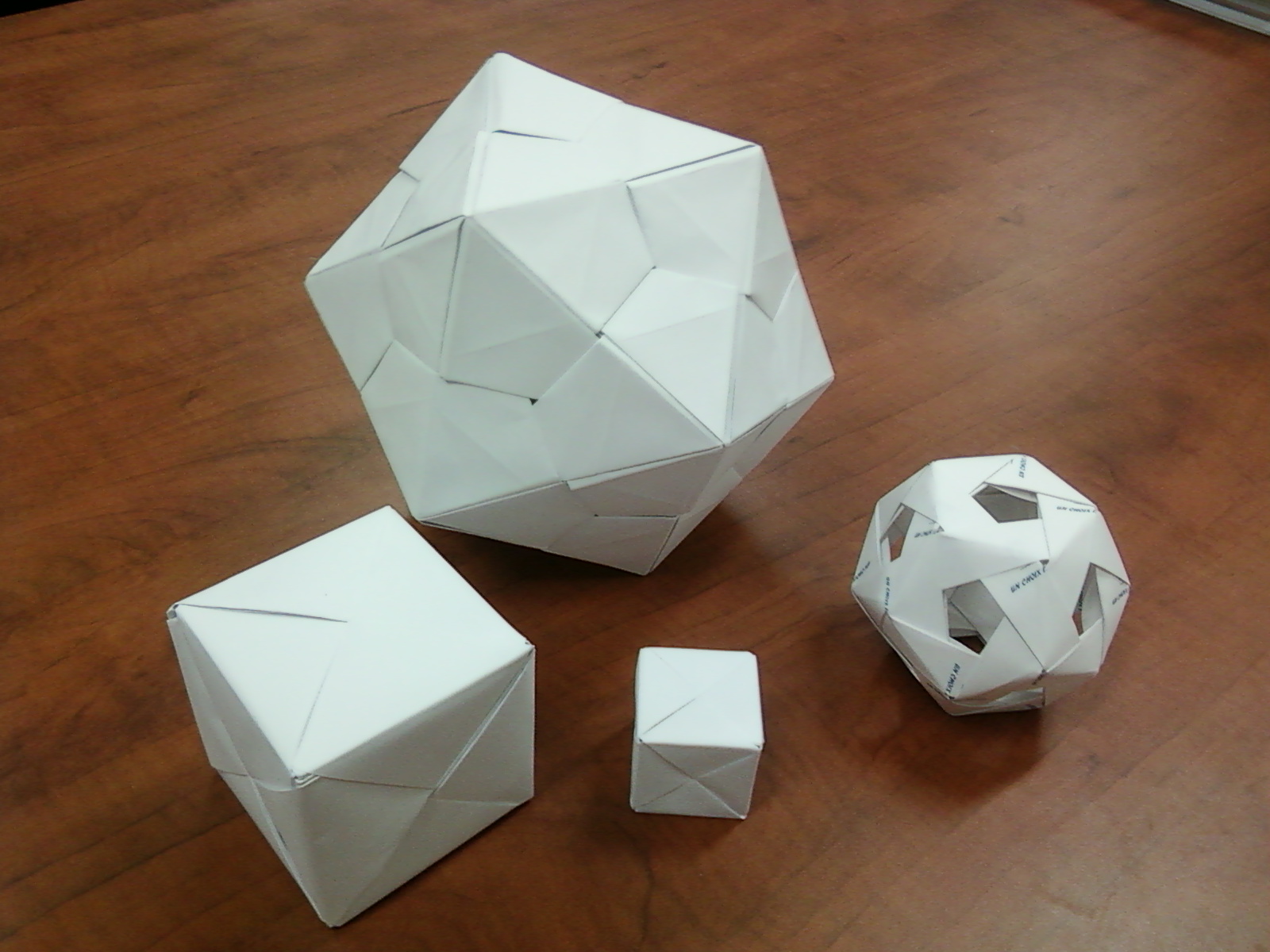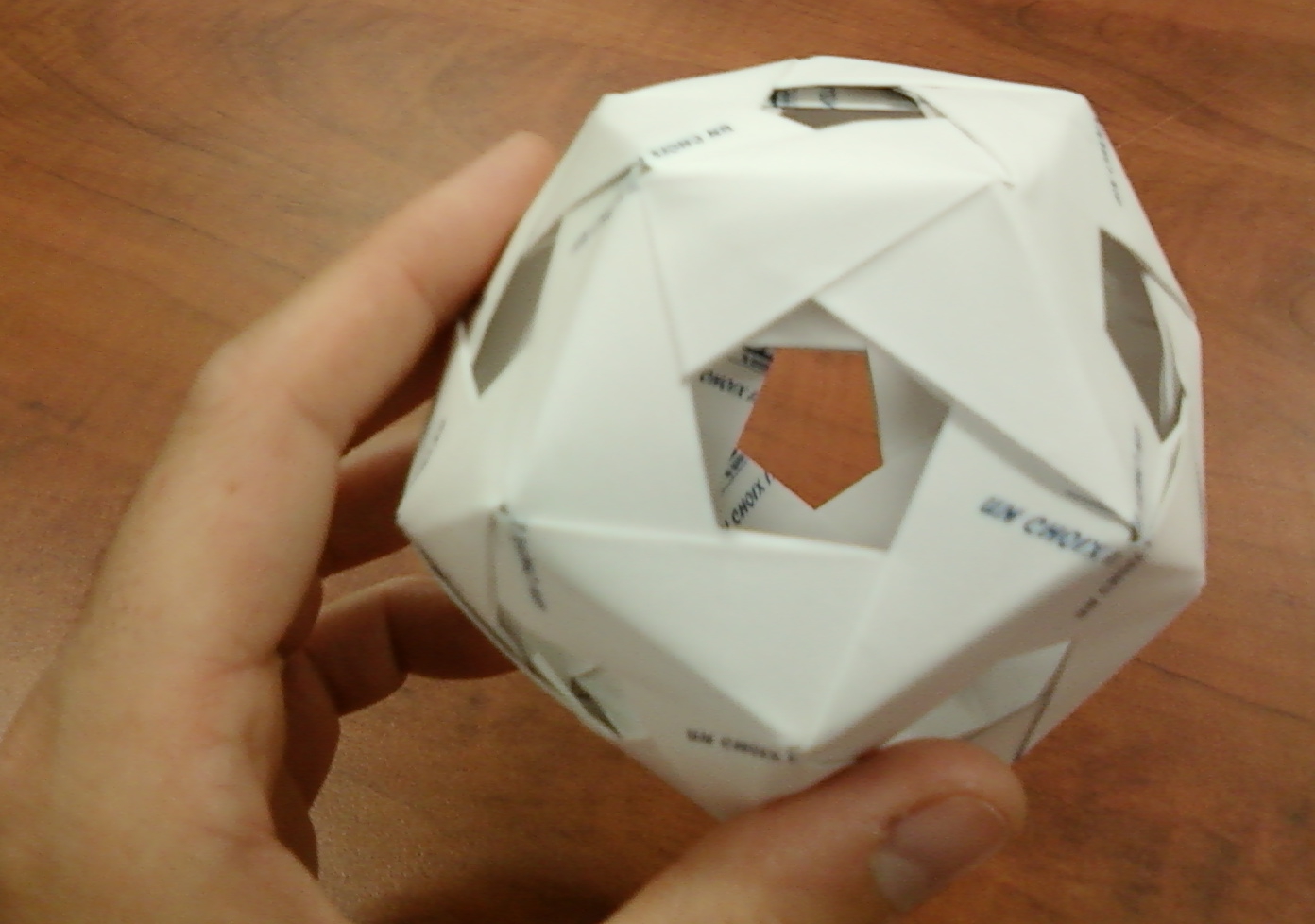 Les livres de Dover ne sont pas très dispendieux. Sauf que l’origami en livre, c’est pas mal plus abstrait que YouTube. Une autre référence explorer est la page du mathématicien sculpteur George W. Hart : http://georgehart.com/ J’ai fait ses modèles avec des cartes à jouer (si vous avez accès à une scie à ruban, c’est facile). Cela génère beaucoup de commentaires de la part des élèves et collègues.