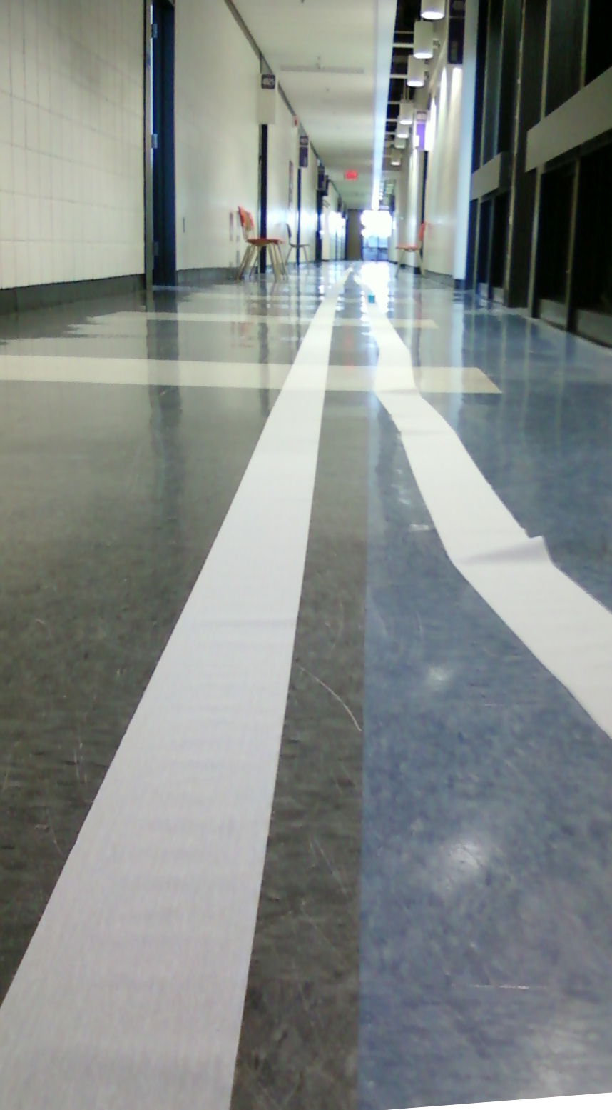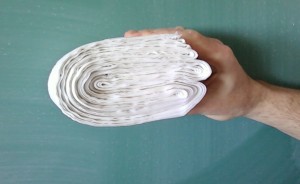 Je plis du papier de toilette comme James Tanton. Cependant, le corridor infini de notre école n’a que 256 pieds (facile à compter, des tuiles !)