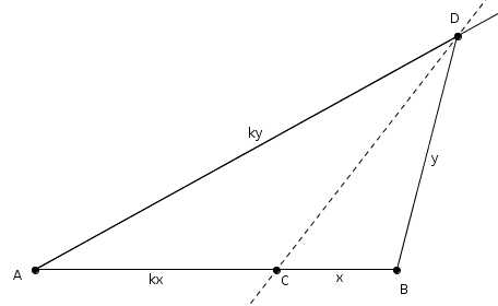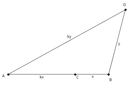 Ici,\[m\overline{CA}\ = \ k\cdot m\overline{CB}\]On considère ensuite un point \(D\) hors de \(\overline{AB}\)